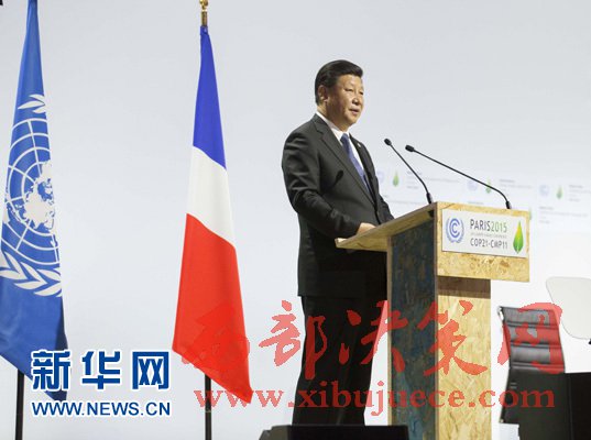 2015年11月30日,國家主席習(xí)近平在巴黎出席氣候變化巴黎大會(huì)開幕式并發(fā)表題為《攜手構(gòu)建合作共贏、公平合理的氣候變化治理機(jī)制》的重要講話。(記者 黃敬文 攝)