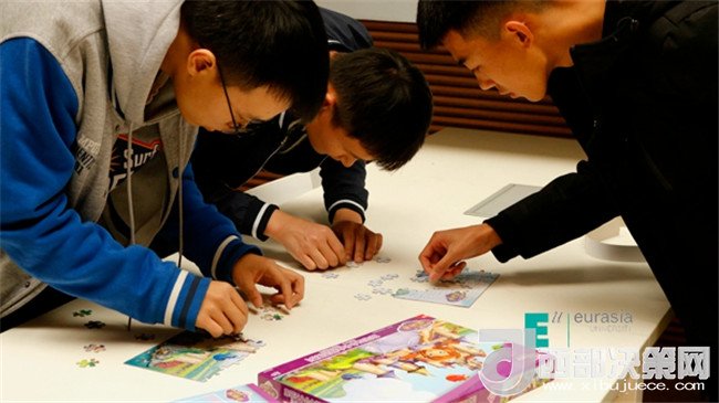 土豆和西紅柿根本就不是一個世界的,但它們走到了一起,變成了薯條和番茄醬它倆就是絕配;學籍制度和競技運動也不是一個世界的,但它們?nèi)诤显诹艘黄?,變成了頭腦風暴和趣味運動它們也可以很般配,現(xiàn)在就讓我們來看看它們是怎么融合的……聽那陣陣氣球爆炸的聲音,他們開始了!在這些綠油油的氣球中有事先設(shè)置的題目隊員們要先擠爆氣球答完題才能得到下一個地方的線索,“補考成績不合格以及成績低于50分必須怎樣?”“本科選修課學分不得低于多少學分?”這些題是不是還要開動腦袋瓜仔仔細細的想想才有答案呢?在比賽的現(xiàn)場一秒都會和對手拉開差距,容不得一絲猶豫拿到線索的隊員們又奔向下一個地點熟悉的教室,這里也不是那么容易通過,看著黑板上的題“冰怎么很快的化成水?”“可替代大學英語四級成績的考試有哪些?”哦,還有計算題,隊員們必須腦洞大開,腦細胞飛速運轉(zhuǎn),做學霸那也是不容易的。只見黑板上粉筆一起一落,答題完畢,看看線索迅速趕往下一地點——地中海。這里指壓板、跳繩早已準備好等著隊員們,學霸不能只管學習身體素質(zhì)也很重要,動起來吧!在指壓板上跳繩,誰想出來的?忍受著腳底的疼痛還要揮動跳繩?太受虐,但是我們是一群不屈不撓的新一代,指壓板上跳繩我們也是鏗鏘有力、一絲不茍。終于結(jié)束痛并快樂著的跳繩環(huán)節(jié),卻看到了整整400塊的拼圖,這個環(huán)節(jié)真是讓人又愛又恨,還記得兒時玩拼圖的快樂,但在這激烈的競爭環(huán)境下,卻是讓人有點心慌和畏懼。隊員們最終齊心協(xié)力戰(zhàn)勝了它,細心、耐心的逐一完好的拼完了每一副圖。