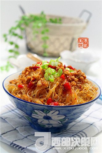 細(xì)碎酥香的肉末粘在粉絲上,尤如螞蟻爬在樹(shù)上,所以得名“螞蟻上樹(shù)”,名字很形象也很有趣。這道菜粉絲油亮誘人、口感柔軟滑嫩、肉沫酥香、風(fēng)味別致,是一道非常有名的家常菜。做法也簡(jiǎn)單,主料只有肉末和粉絲,很適合居家制作。