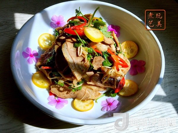 金桔與鴨脯及辛香配料經(jīng)抓拌后,互相大融和,各自奉獻精華,滋潤的金桔,有份鴨油香,鴨脯肉里充滿桔香,吃過的都夸我好吃。