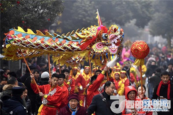 當(dāng)日,2018好客山東賀年會暨臺兒莊古城開福門迎新年儀式在臺兒莊古城舉行。百獅賀歲、火龍鋼花、社火巡游、花燈祈福等民俗文化展演精彩紛呈,吸引了大批游客。
