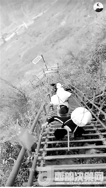 現(xiàn)在,村里24歲的彝族小伙兒拉博已經(jīng)成為首批網(wǎng)紅之一。2016年11月19日,垂直距離約800米、總共約1000級(jí)臺(tái)階的懸崖村鋼梯工程竣工。拉博就是鋼梯施工隊(duì)的一員,在山崖最陡峭的一段,他親手打下了固定的鋼釘。鋼梯完工后,拉博特意去“跑”了一遍,從山頂?shù)缴侥_僅耗時(shí)18分鐘,而這段路普通人可能需要一個(gè)半小時(shí)。從小放羊的拉博習(xí)慣了在山間奔跑跳躍,爬天梯、過(guò)吊橋、放牛羊這些生活日常,在5個(gè)月的時(shí)間里為他帶來(lái)了12.6萬(wàn)的粉絲。