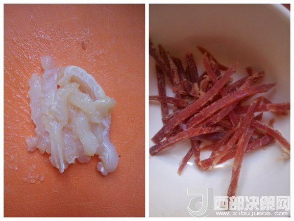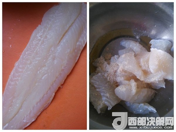 5、提前腌好的魚肉切成更短更細(xì)的小條;