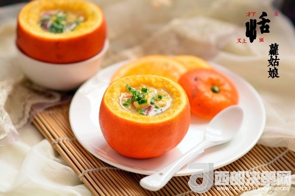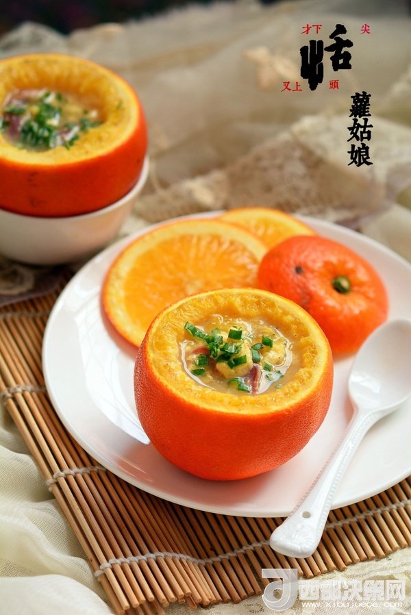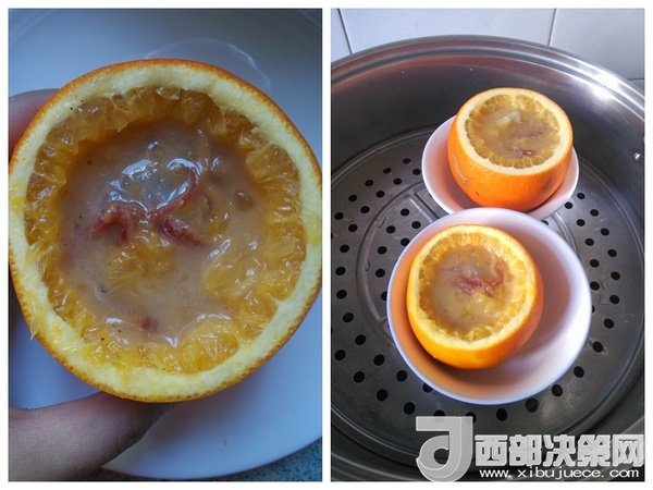 11、放到橙子里面,不要放滿,留一點(diǎn)地方;