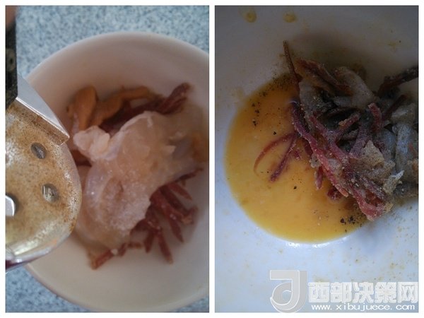 2、加點(diǎn)食鹽和雞粉揉勻之后腌制半個小時;