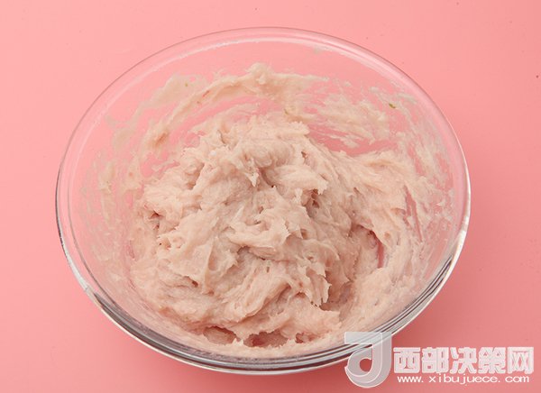 3、調(diào)入少許鹽、淀粉、蛋清攪拌均勻。然后加入水(比例大概魚3:水1),用筷子順著一個(gè)方向攪拌上勁。