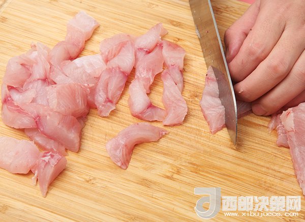 1、告訴魚攤老板你要做魚丸,他就會(huì)幫你把魚去骨去刺去魚皮,然后片成魚條?;貋砬逑锤蓛?,把魚肉切片。