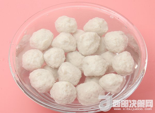 7、制作好的魚丸放入冷水中浸泡3-5分鐘再取出。