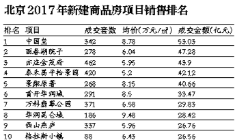 根據(jù)亞豪機構提供的榜單來看,2017年北京市新建商品住宅市場的主力產(chǎn)品依然是改善型產(chǎn)品。其中成交均價最低的泰禾昌平拾景園也有5.2萬元/平方米,而更多的項目則集中在6萬-9萬元/平方米的價格區(qū)間之內。
