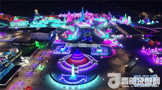 這是航拍的流光溢彩冰雪大世界園區(qū)(1月4日攝)。時(shí)下正值嚴(yán)冬,第十九屆哈爾濱冰雪大世界每天吸引著來自天南海北的眾多游客。夜幕初降,冰雪大世界園區(qū)流光溢彩、如夢(mèng)似幻,成為冰雪童話世界。本屆哈爾濱冰雪大世界占地80萬平方米,用冰量18萬立方米,用雪量15萬立方米。
