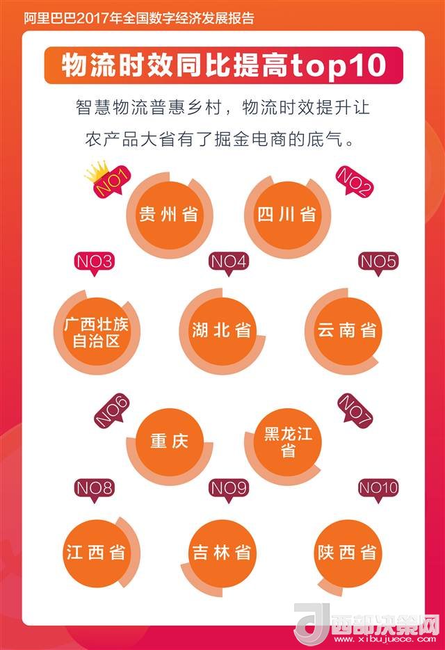 1月9日,阿里巴巴集團發(fā)布“2017中國數(shù)字經(jīng)濟發(fā)展報告”(下稱報告),通過電商、新零售、支付、物流等大數(shù)據(jù)及就業(yè)指數(shù)、云棲指數(shù)等,展現(xiàn)2017年全國各省(市)數(shù)字經(jīng)濟發(fā)展活力。報告顯示,2017年重慶人均網(wǎng)購消費增長、物流時效提速等排名靠前,分別位列全國第七和第六。