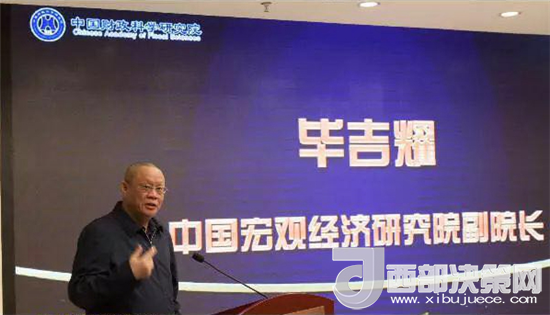 中國宏觀經(jīng)濟研究院副院長畢吉耀在研討會上發(fā)表演講。圖片來源: 財政智庫動態(tài)微信號