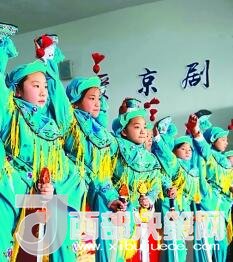 江蘇省海安縣城東鎮(zhèn)西場小學京劇社團的小票友在排練京劇節(jié)目《霸王別姬》。徐勁柏攝/光明圖片