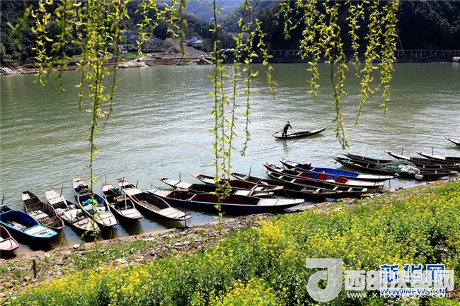 當(dāng)日,陽光燦爛,氣溫回升,安徽省黃山市歙縣境內(nèi)的石潭村、山水畫廓新安江、大洲源等地種植的油菜花陸續(xù)盛開,吸引著全國各地的游客到此觀光旅游。新華網(wǎng)發(fā)(潘成 攝)