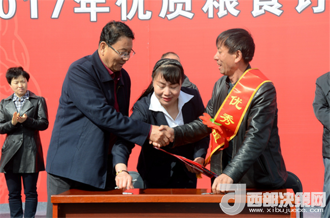 西部決策網——西部大開發(fā)訊(武金鑫)3月15日,寧夏昊王米業(yè)集團帶動大米產業(yè)發(fā)展兌付優(yōu)質糧食訂單獎勵資金現(xiàn)場會在靈武召開。此次會議由寧夏昊王米業(yè)集團主辦,寧夏農民合作社聯(lián)合會、中化現(xiàn)代農業(yè)有限公司協(xié)辦,此外,自治區(qū)農牧廳、自治區(qū)財政廳、自治區(qū)糧食局等135家區(qū)內外單位和多家媒體參加了此次會議。會議上,寧夏昊王米業(yè)集團自籌資金153.88萬元來獎勵17年優(yōu)質糧食訂單完成突出的優(yōu)秀農戶共15人并與農戶簽訂2018年優(yōu)質糧食訂單合同。