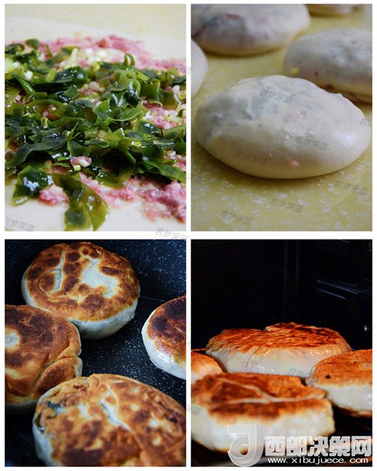肉末用我自制的爬蝦醬提前腌制好,這樣食用時即有肉的香氣,還帶有海鮮的味道,再加上裙帶菜的清鮮,讓這款亂搭材料的餅出奇的好吃!