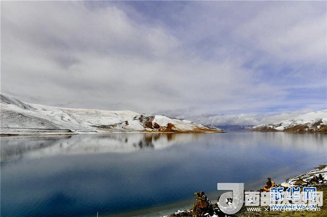 湖水與湖畔雪山相映成趣(4月8日攝)。
