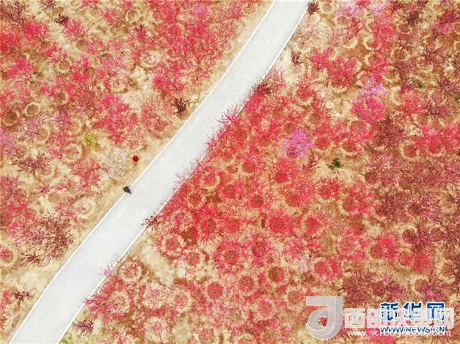 4月11日,游客在河北省石家莊市滹沱河風景區(qū)賞花游玩。 新華社發(fā)(劉沛然攝)