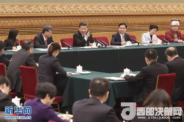 2018年3月7日,中共中央總書(shū)記、國(guó)家主席、中央軍委主席習(xí)近平參加十三屆全國(guó)人大一次會(huì)議廣東代表團(tuán)的審議。新華社發(fā)(盛佳鵬攝)