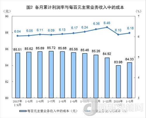 1-3月份,規(guī)模以上工業(yè)企業(yè)實現(xiàn)主營業(yè)務收入25.2萬億元,同比增長9.6%;發(fā)生主營業(yè)務成本21.2萬億元,增長9.4%;主營業(yè)務收入利潤率為6.18%,同比提高0.11個百分點。