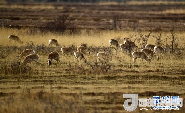 4月26日,一群普氏原羚在青海省海北藏族自治州剛察縣哈爾蓋鎮(zhèn)附近的草原覓食。新華社記者張宏祥攝