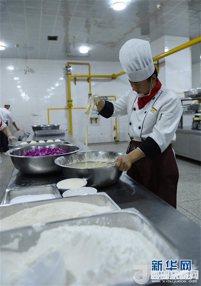 4月25日,廚師們在云南大學呈貢校區(qū)食堂制作玫瑰包。