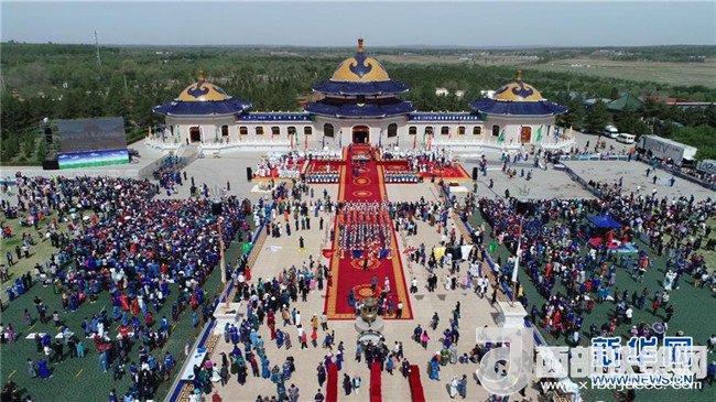 這是成吉思汗陵春季大祭現(xiàn)場(chǎng)(5月6日無(wú)人機(jī)拍攝)。新華社記者 達(dá)日罕 攝