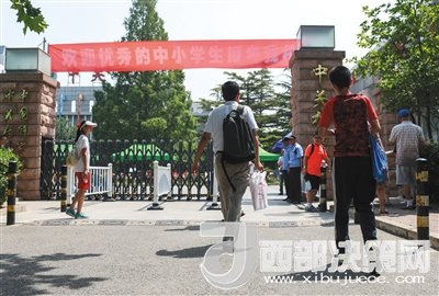 2017年5月20日,家長(zhǎng)帶著孩子參加中關(guān)村中學(xué)小升初特長(zhǎng)生招生考試。當(dāng)年,各區(qū)招收小升初特長(zhǎng)生比例較2016年再降1個(gè)百分點(diǎn)。記者 浦峰 攝