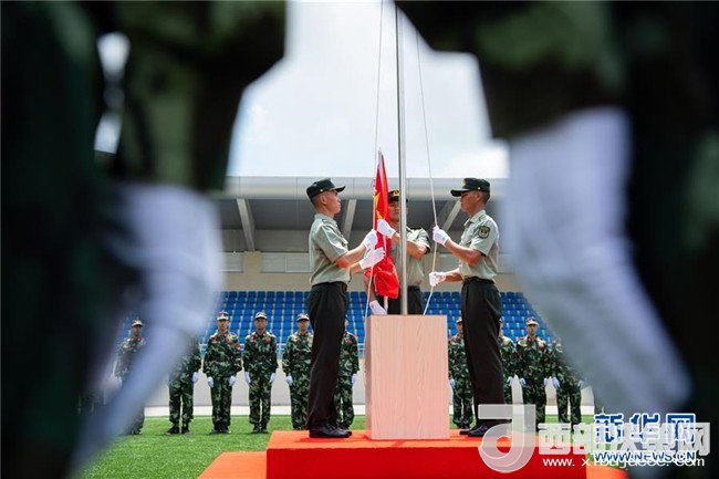 當(dāng)日,“國(guó)旗下的說(shuō)話·2018年澳門中學(xué)生國(guó)旗手訓(xùn)練營(yíng)”舉行。來(lái)自30所澳門中學(xué)的300余名中學(xué)生會(huì)聚解放軍駐澳門部隊(duì)氹仔軍營(yíng),在迷彩的青春方陣中親手升起鮮艷的五星紅旗。新華社記者張金加攝