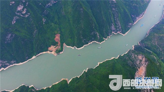 5月23日,船只穿梭在瞿塘峽(無(wú)人機(jī)拍攝)。 新華社記者 王全超攝