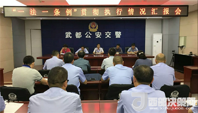 西部決策網(wǎng)——西部大開(kāi)發(fā)訊 (帥華鋒 通訊員 馬存福 郭文靜) 5月25日,甘肅隴南市武都區(qū)人大常委會(huì)執(zhí)法檢查組帶領(lǐng)交通局、運(yùn)管局、綜合執(zhí)法局、安監(jiān)局等部門(mén)負(fù)責(zé)人,深入武都區(qū)公安局交警大隊(duì)督導(dǎo)檢查《中華人民共和國(guó)道路交通安全法》和《甘肅省道路交通安全條例》(以下簡(jiǎn)稱(chēng)“一法一條例”)貫徹實(shí)施情況,大隊(duì)班子成員陪同檢查。