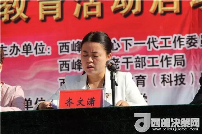 啟動(dòng)儀式由西峰區(qū)人民政府副區(qū)長(zhǎng)、關(guān)工委副主任齊文瀟主持,并作“傳承紅色基因,爭(zhēng)做時(shí)代新人”主題教育動(dòng)員講話。她指出,開展“傳承紅色基因,爭(zhēng)做時(shí)代新人”主題教育活動(dòng),是為貫徹落實(shí)習(xí)近平新時(shí)代中國(guó)特色社會(huì)主義思想對(duì)關(guān)心下一代工作提出的新要求作出的重大部署和安排,主要目的在于引導(dǎo)廣大青少年認(rèn)清自己的“根”和“魂”,教育引導(dǎo)廣大青少年從紅色基因中汲取道德滋養(yǎng)和文化精髓,自覺踐行社會(huì)主義核心價(jià)值觀,堅(jiān)定理想信念,為實(shí)現(xiàn)偉大復(fù)興的中國(guó)夢(mèng)做出應(yīng)有的貢獻(xiàn)。
