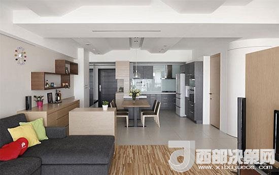 設(shè)計師打開原客廳后方的小房間格局,再以半高木柜墻體形塑穿透感空間分野。