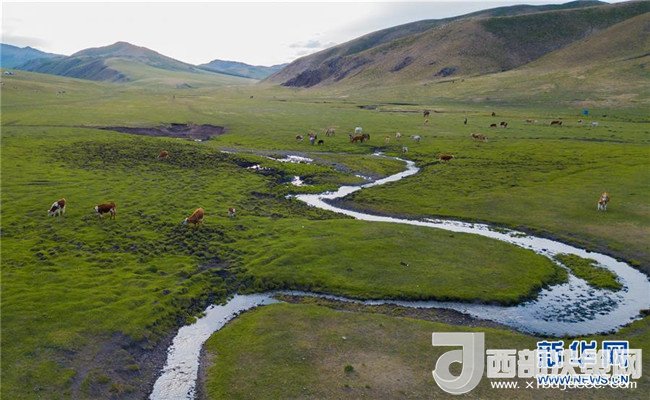 6月6日無(wú)人機(jī)拍攝的進(jìn)入全面返青期的內(nèi)蒙古赤峰市阿魯科爾沁草原。新華社記者 彭源 攝
