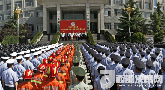 天水市委常委、政法委書記蒲軍,市人大常委會副主任王曉琴,市政協(xié)副主席郭明興,市人民檢察院檢察長張發(fā)魁,市委政法委常務(wù)副書記陳明達,市司法局局長彭德祥,市公安局常務(wù)副局長曹小明等領(lǐng)導(dǎo)出席大會。會議由副市長、市公安局局長馬瑛主持。全市公安機關(guān)各警種460余人列隊參加誓師大會。