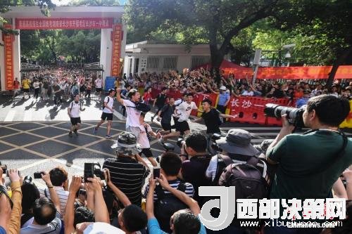 資料圖:6月8日下午,湖南長沙市一中考點(diǎn)外,考生跑出考場,慶祝高考結(jié)束。 中新社記者 楊華峰 攝