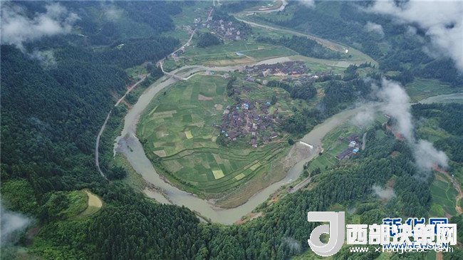 煙雨中的貴州省榕江縣寨蒿鎮(zhèn)三洲村風(fēng)光(6月24日無(wú)人機(jī)拍攝)。