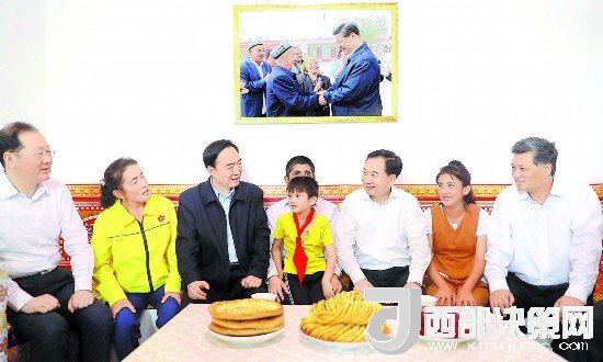 6月26日,自治區(qū)黨委書記、新疆生產(chǎn)建設(shè)兵團(tuán)黨委第一書記、第一政委陳全國陪同廣東省委書記李希,廣東省委副書記、省長馬興瑞,來到疏附縣吾庫薩克鎮(zhèn)托萬克吾庫薩克村看望慰問貧困戶阿布都熱西提·麥麥提一家。崔志堅(jiān) 攝