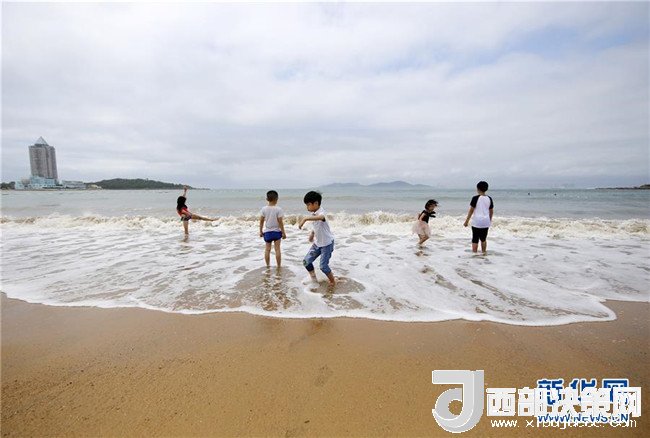 7月1日,人們?cè)谇鄭u第一海水浴場(chǎng)海灘上游玩。 新華社記者 李紫恒 攝