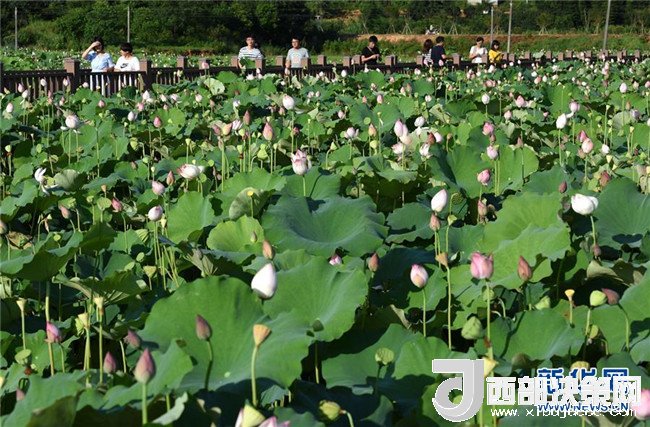 目前,江西南豐縣3萬余畝蓮花競相綻放,吸引不少游客前來觀賞。近年來,南豐縣依托白蓮等特色農(nóng)業(yè)產(chǎn)業(yè),深入推進旅游扶貧項目建設,引導貧困戶以土地、勞務、產(chǎn)業(yè)直補資金等形式入股旅游產(chǎn)業(yè)項目,走出了一條特色旅游扶貧之路。2017年,南豐縣共接待游客392萬人次,實現(xiàn)旅游綜合收入31.6億元,全縣共脫貧353戶1109人。新華社記者宋振平攝
