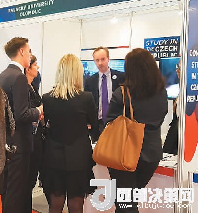 2017中國國際教育展(北京)上,近20所捷克高校及中學(xué)組成的捷克展團(tuán)亮相。圖為捷克某大學(xué)展臺。