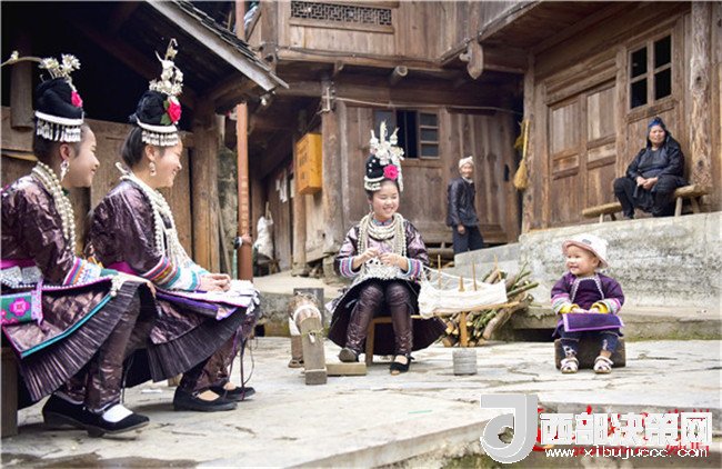 2018年3月17日,在貴州省從江縣高增鄉(xiāng)占里村,侗族姑娘在“二月一”祭祖盟誓儀式上紡紗。(吳德軍攝)