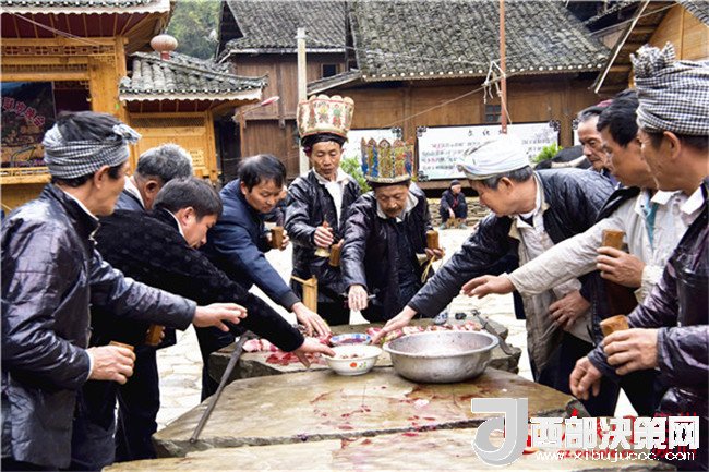 2018年3月17日,在貴州省從江縣高增鄉(xiāng)占里村,侗族寨老在舉行“二月一”祭祖盟誓儀式。(吳德軍攝)