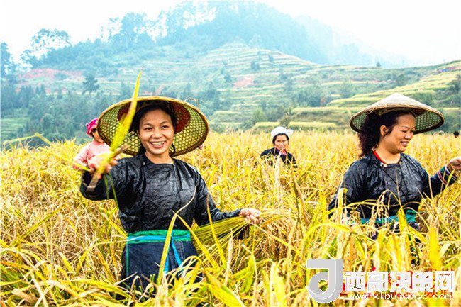 貴州省從江縣高增鄉(xiāng)占里村侗族群眾在搶收香糯禾。(吳德軍攝)