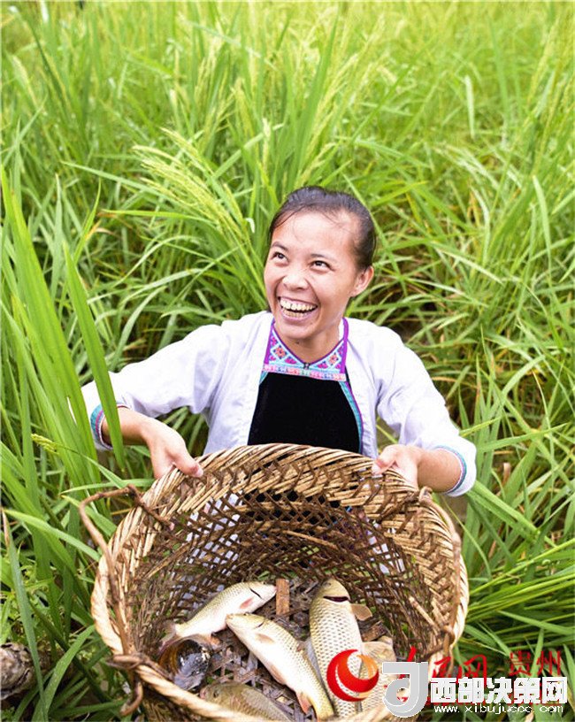 在貴州省從江縣高增鄉(xiāng)占里村,侗族姑娘吳紅花展示捉到的鯉魚。(吳德軍攝)