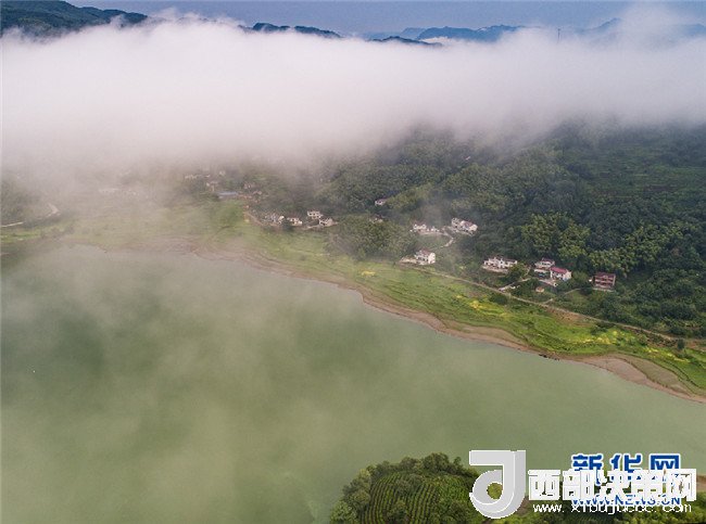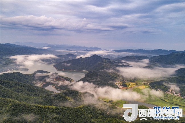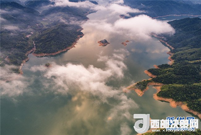 7月26日,霍山縣磨子潭鎮(zhèn)。磨子潭水庫(kù)上空白云朵朵,宛若仙境。