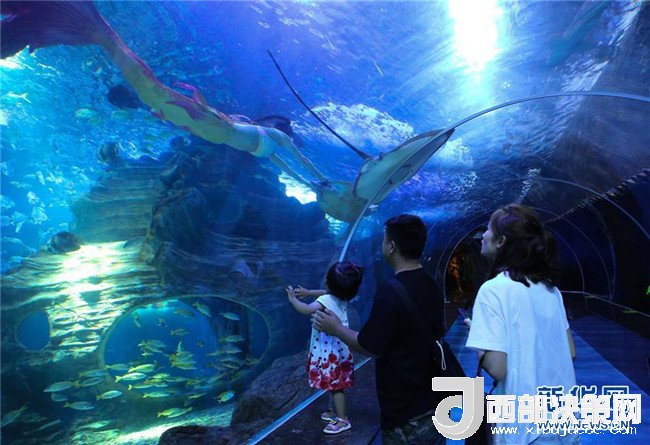 7月30日,家長(zhǎng)帶著孩子在貴陽(yáng)一家海洋世界觀看“美人魚”表演。