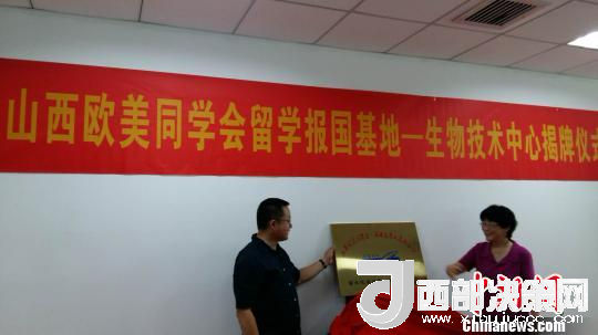 會前,與會人員共同見證了“留學報國基地—生物技術中心揭牌儀式”。山西歐美同學會 供圖