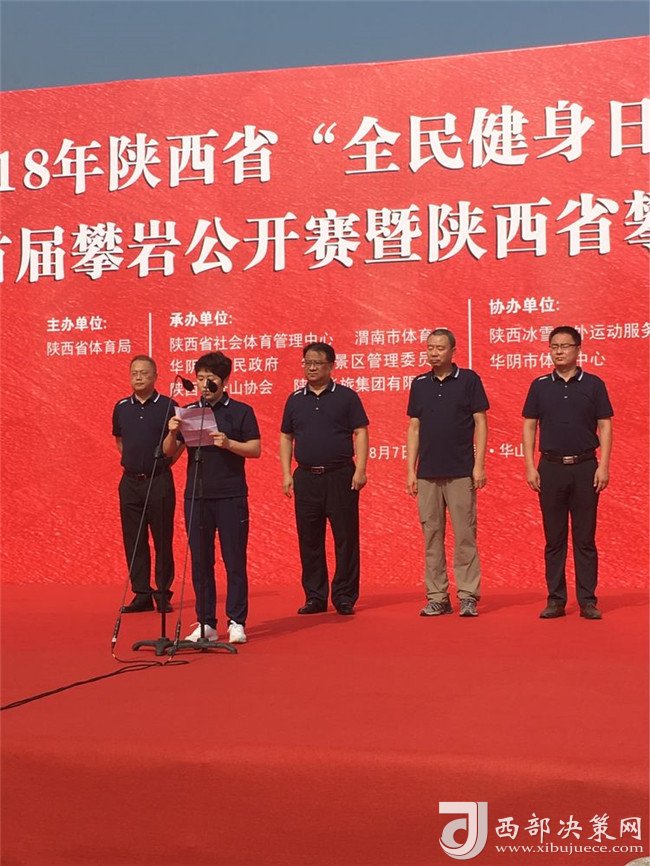 開幕儀式上,陜西華山旅游集團(tuán)有限公司副總經(jīng)理趙江峰代表華山旅游集團(tuán)有限公司致詞,他表示,向此次攀巖公開賽的開幕表示熱烈地祝賀,向出席開幕式地各位領(lǐng)導(dǎo)、各位來賓、運(yùn)動(dòng)員、裁判員表示熱烈地歡迎,向籌備的工作人員表示衷心的感謝!通過舉辦這項(xiàng)活動(dòng),旨在促進(jìn)陜西省旅游產(chǎn)業(yè)與體育事業(yè)的高度融合,彰顯華山旅游品牌形象和影響力,以此推動(dòng)攀巖運(yùn)動(dòng)在省內(nèi)的蓬勃發(fā)展。