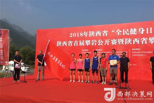 隨后陜西省登山協(xié)會(huì)主席陳錚向省攀巖集訓(xùn)隊(duì)教練組代表邱洪樹授“陜西省攀巖集訓(xùn)隊(duì)”隊(duì)旗,并頒發(fā)聘書。陜西省社會(huì)體育管理中心主任田凱、渭南市體育局副局長(zhǎng)王曉燕、陜西華山旅游集團(tuán)有限公司副總經(jīng)理趙江峰同志共同為“陜西省攀巖訓(xùn)練基地”揭牌。